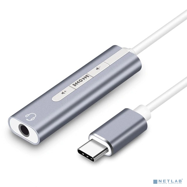 ORIENT AU-05PL, Адаптер USB to Audio (звуковая карта), jack 3.5 mm (4-pole) для подключения телефонной гарнитуры к порту USB Type-C, кнопки: громкость +/-, играть/пауза/вперед/назад; Windows/Linux/MAC