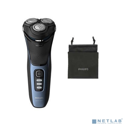 PHILIPS S3232/52 Электробритва Серии 3000. Сухой/влажный тип бритья. Система лезвий PowerCut, плавающие головки 5D, откидной триммер, мягкий чехол. Питание аккумулятора (Li-ion): 60 минут бритья