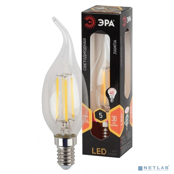 ЭРА Б0043436 Лампочка светодиодная F-LED BXS-5W-827-E14 Е14 / Е14 5Вт филамент свеча на ветру теплый белый свет