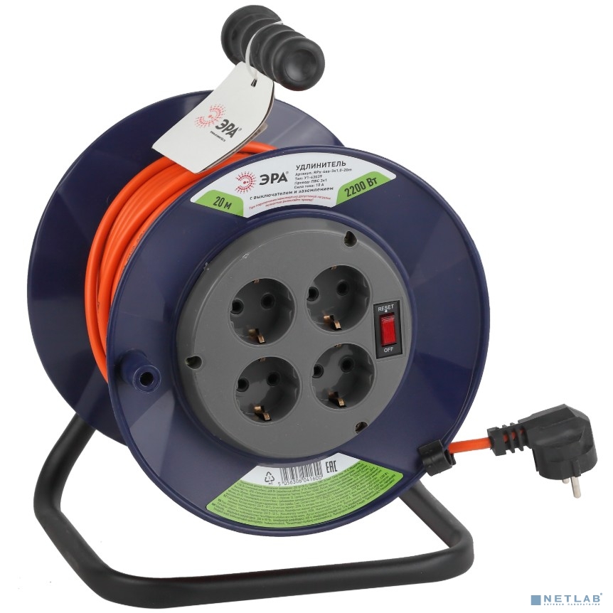 ЭРА Б0043054 Удлинитель силовой RPx-4es-3х1.0-20m на п. катушке c/з 4 гн 20м ПВС 3х1