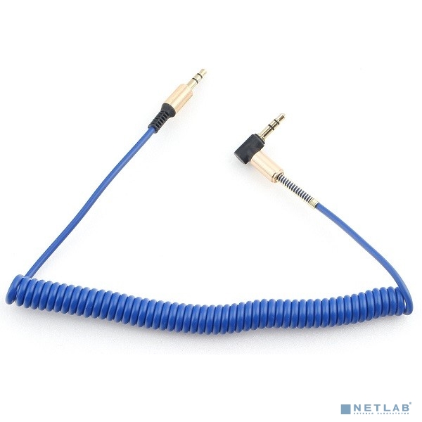 Кабель аудио (угловой) спиральный Cablexpert CCAB-02-35MMLC-1.8MU. 3.5 джек (M)/3.5 джек (M), синий, 1.8м, блистер