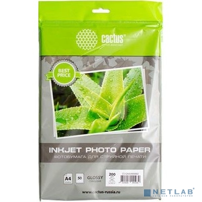 Фотобумага Cactus CS-GA418050ED глянцевая/A4/180г/м2/50л./белый для струйной печати