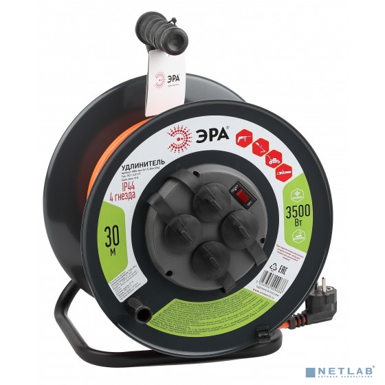 ЭРА Б0046850 Удлинитель силовой RMx-4es-3x1.5-30m-IP44 на м. катушке c/з 4 гн 30м ПВС 3х1.5