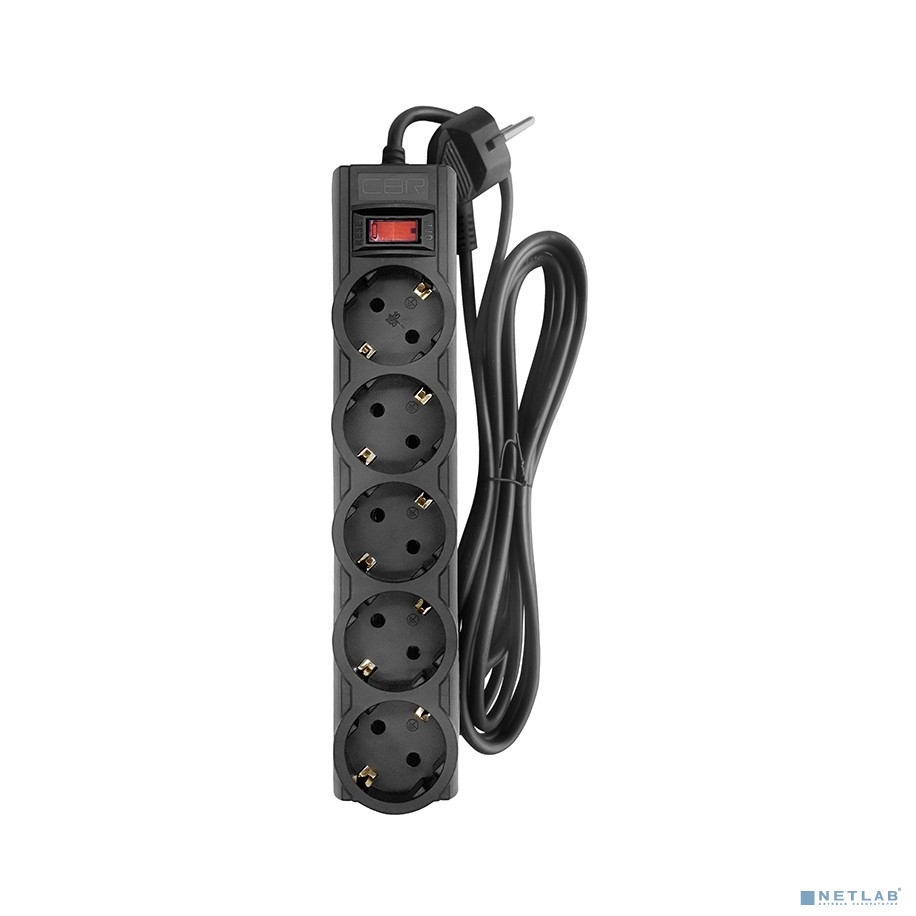 CBR Сетевой фильтр CSF 2505-1.8 Black CB, 5 евророзеток, длина кабеля 1,8 метра, цвет чёрный (коробка)