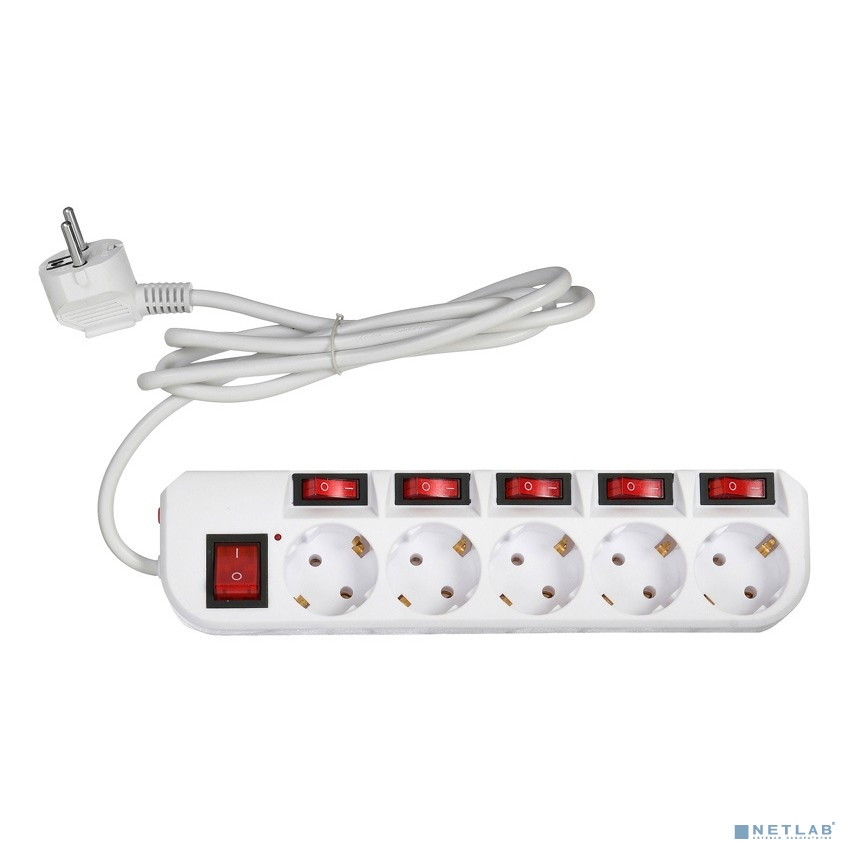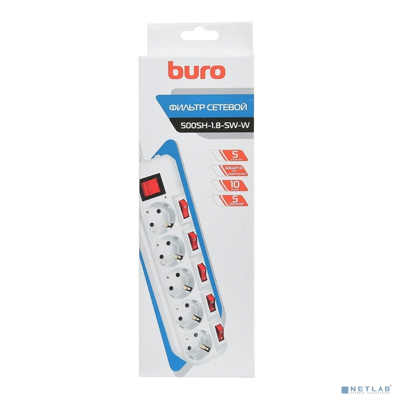 BURO Сетевой фильтр 5 розеток (500SH-1.8-SW-W) 1.8м, белый коробка {1159720}