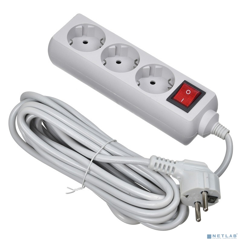BURO Сетевой фильтр 3 розетки (300SL-5-G), 5м, серый (пакет ПЭ) {1087166}