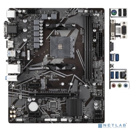 Gigabyte A520M S2H {Soc-AM4 AMD A520 2xDDR4 mATX AC`97 8ch(7.1) GbLAN RAID+VGA+DVI+HDMI}