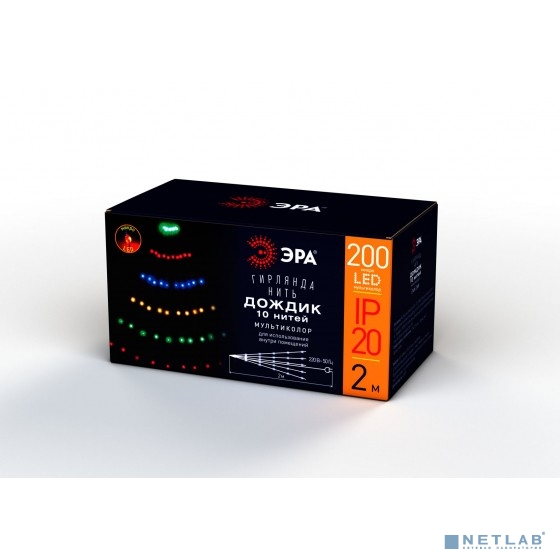 ЭРА Б0047966 Гирлянда LED Дождик 10 нитей 2 метра мультиколор 220V, IP20