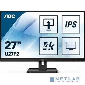 LCD AOC 27" U27P2 черный {IPS 3840x2160 4ms 178/178 350cd 1000:1 75Hz 10bit(8bit+FRC) HDMI2.0 DisplayPort1.2 4xUSB3.2 VESA 2x2W}