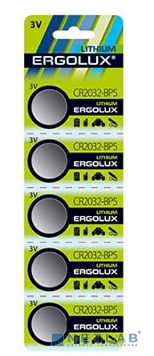 Ergolux.CR2032 BL-5 (CR2032-BP5, батарейка литиевая,3V) (5 шт. в уп-ке)