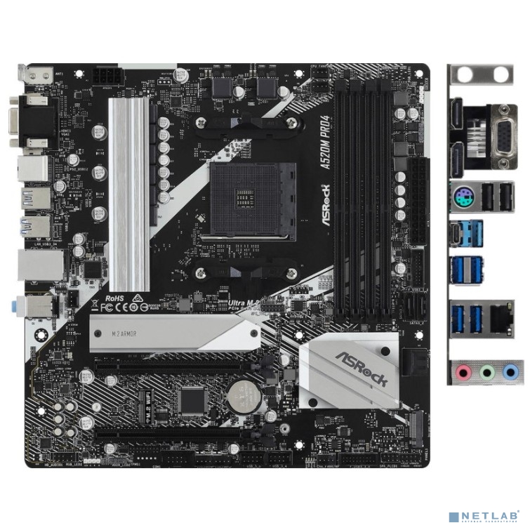 Asrock A520M PRO4 RTL {Soc-AM4 AMD A520 4xDDR4 mATX AC`97 8ch(7.1) GbLAN RAID+VGA+HDMI+DP}