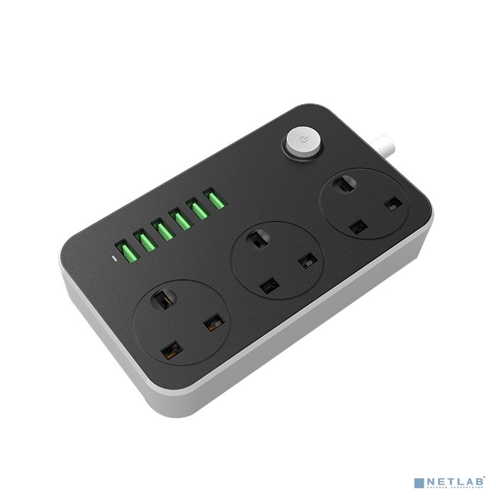 Perfeo LD_B4440 LDNIO SC3604/ Сетевой удлинитель 2м EU_UK_US + ЗУ на 6 USB/ 3 розетки (медь) - 2500W/USB 17W/ Gray