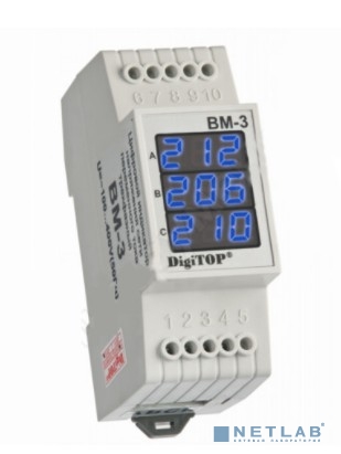 DigiTOP Вм-3 (BLUE) Вольтметр на DIN-рейку, трехфазный, 40-400В