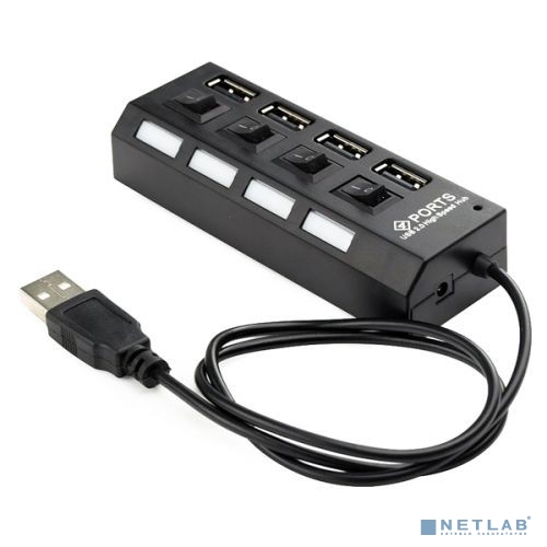 Концентратор USB 2.0 Gembird UHB-243-AD с подсветкой и выключателем, 4 порта, блистер (UHB-243-AD)