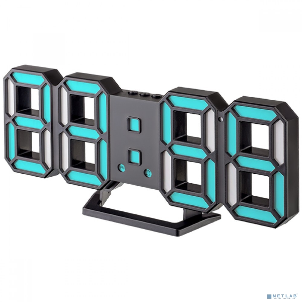 Perfeo LED часы-будильник "LUMINOUS 2", черный корпус / синяя подсветка (PF-6111) [PF_B4928]