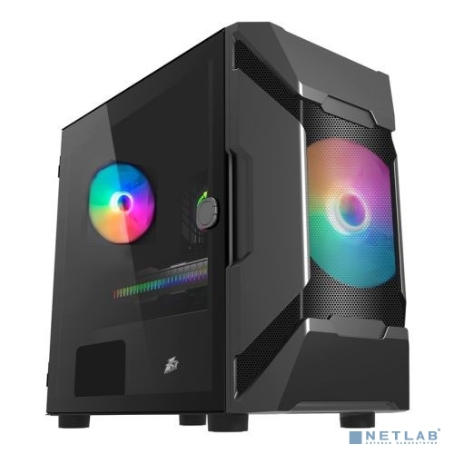 1STPLAYER Корпус DK D3-A BLACK / mATX, tempered glass / 2x 140mm LED fans inc. / D3-A-BK-2G6P