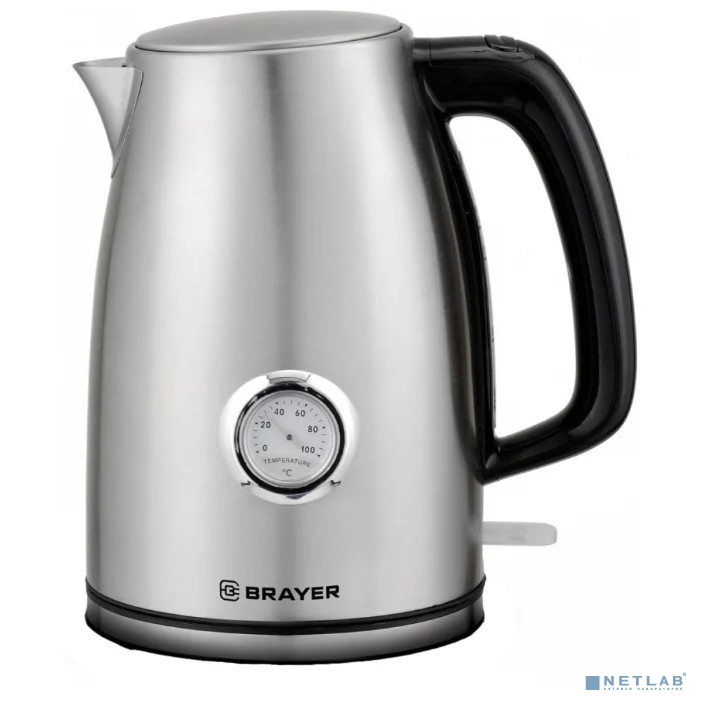 BRAYER 1022BR Чайник электрический , 2200Вт.1,7 л, STRIX, стальной, термометр.