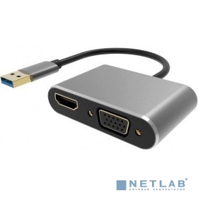 VCOM CU322M Кабель-переходник USB 3.0 (Am) --> HDMI(f)+VGA(f), Aluminum Shell