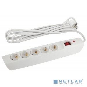 ЭРА Б0044019 Сетевой фильтр Россия SFX-5es-2m-W ЭРА Сет.фильтр (белый) с заземл, 10A, с выкл, 5гн, 2м