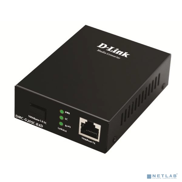 D-Link DMC-G20SC-BXD/A1A WDM медиаконвертер с 1 портом 100/1000Base-T и 1 портом 1000Base-LX с разъемом SC (Tx: 1550 мкм; Rx: 1310 мкм) для одномодового оптического кабеля (до 20 км)