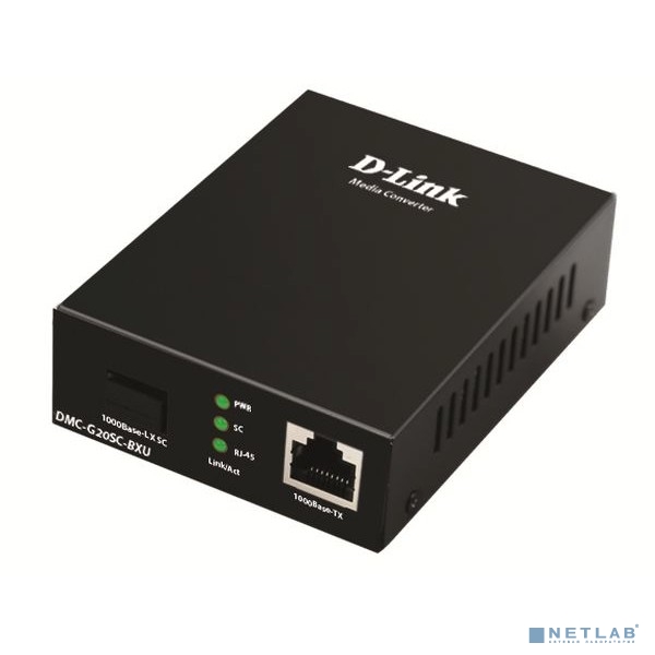 D-Link DMC-G20SC-BXU/A1A WDM медиаконвертер с 1 портом 100/1000Base-T и 1 портом 1000Base-LX с разъемом SC (Tx: 1310 мкм; Rx: 1550 мкм) для одномодового оптического кабеля (до 20 км)