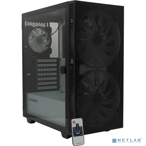 GameMax Корпус Aero А367 (ATX,Черн.,USB3.0, Зак.стекло,2*200мм RGB вент+конт.+пульт, сет.фильтр, без БП)