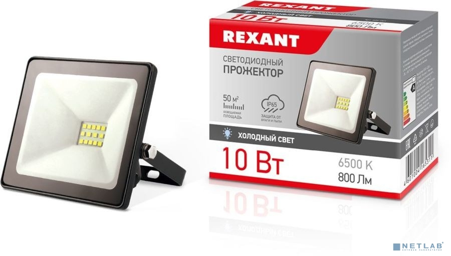 Rexant 605-001 Прожектор светодиодный 10 Вт 200–260В IP65 800 лм 6500 K холодный свет