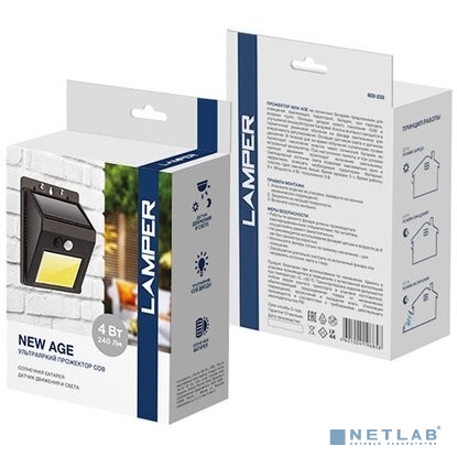 Rexant 602-233 Светильник ПРОЖЕКТОР NEW AGE на солнечной батарее, датчик движения плюс датчик освещенности, кнопка вкл/выкл герметичная фасадная, LED COB монтаж на стену