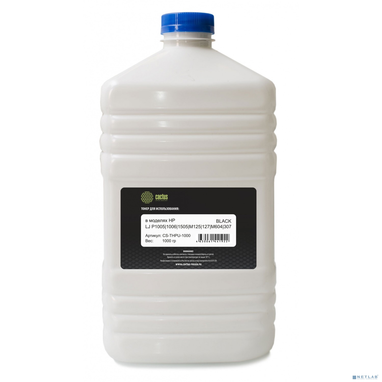 Тонер Cactus CS-THPU-1000 черный флакон 1000гр. для принтера HP LJ P1005/1006/1505/M125/127/M604/307/608