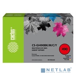 Чернила Cactus CS-GI490BK/M/C/Y голубой/пурпурный/желтый/черный набор 4x100 мл для Canon Pixma G1400/G2400/G3400