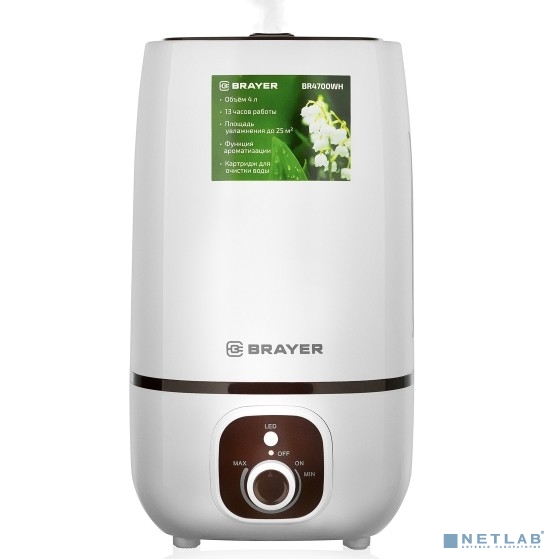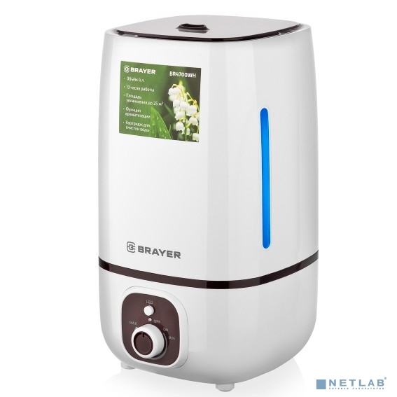 BRAYER 4700BR-WH Увлажнитель ультразвуковой , 4 л, 25 м, 13 ч., регулировка интенсивности, аромат.