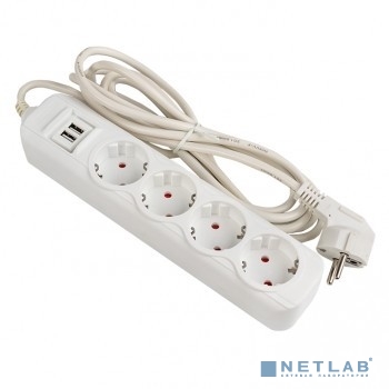 EKF UBA16-2USB-4-03i Удлинитель "Эксперт" 4 гнезда 3 метра 16А/3,5кВт с 2 USB 2,1А ПВС 3х1