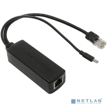 PoE сплиттер для приема питания по витой паре и передаче к сетевому оборудованию. Выходное напряжение 5В, напряжение на входе 48В. Коннектор micro-USB Bm