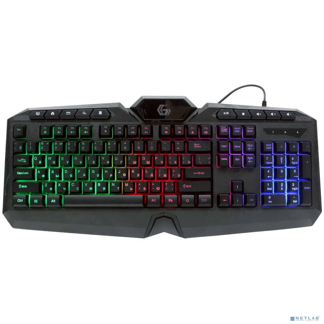 Клавиатура Gembird KB-G410L, USB, черный, 114 кл., м/медиа, Rainbow, кабель 1.5м