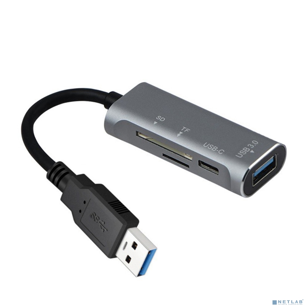 ORIENT JK-328, USB 3.0 (USB 3.1 Gen1)/USB 2.0 HUB 2 порта: 1xUSB3.0 + 1xUSB2.0 Type-C, SD/microSD CardReader, USB штекер тип А, алюминиевый корпус, серебристый (31238)