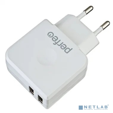 PERFEO Сетевое зарядное устройство с двумя разъемами USB, 3.4А, белый (I4621)