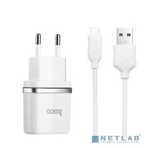 HOCO HC-47773 C12/ Сетевое ЗУ + Кабель Micro 1m/ 2 USB/ Выход: 12W/ White