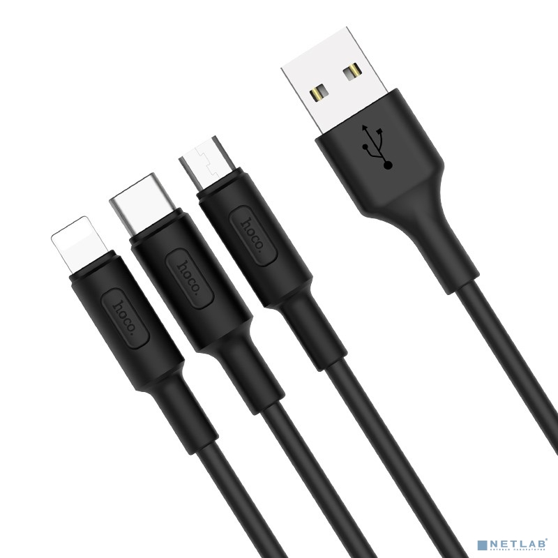 HOCO HC-80169 X25/ USB кабель 3-in-1: Lightning+Micro+Type-C/ 1m/ 2A/ Black