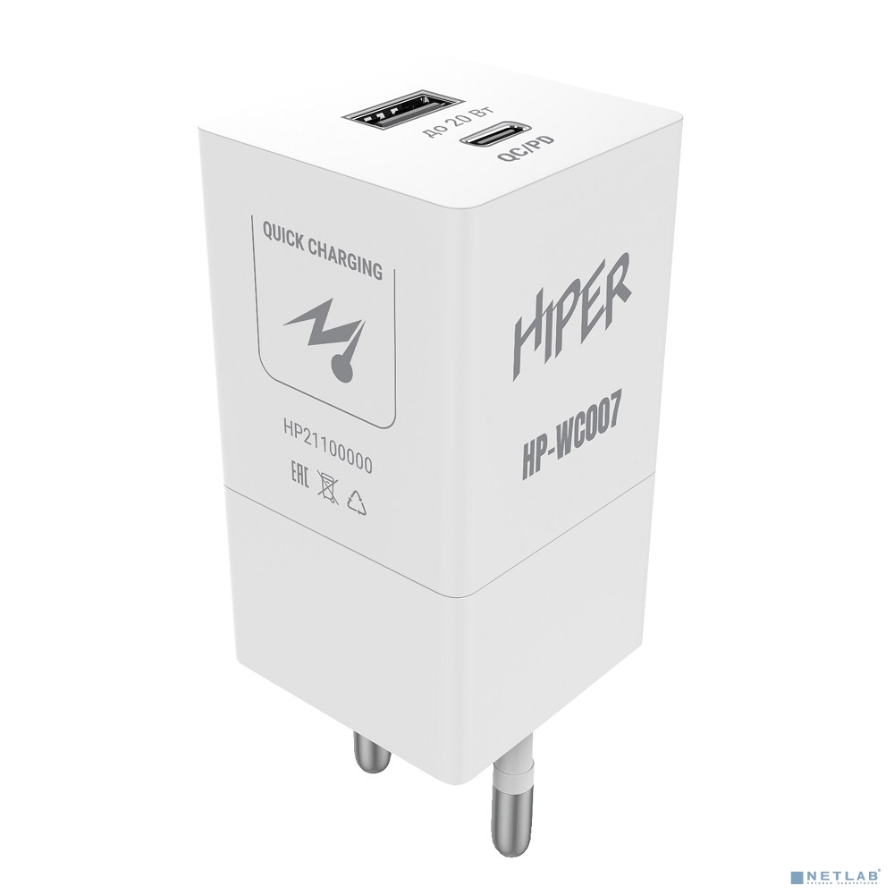 HIPER СЗУ 20 Вт, QC/PD, TYPE-C + USB A, белый (HP-WC007)