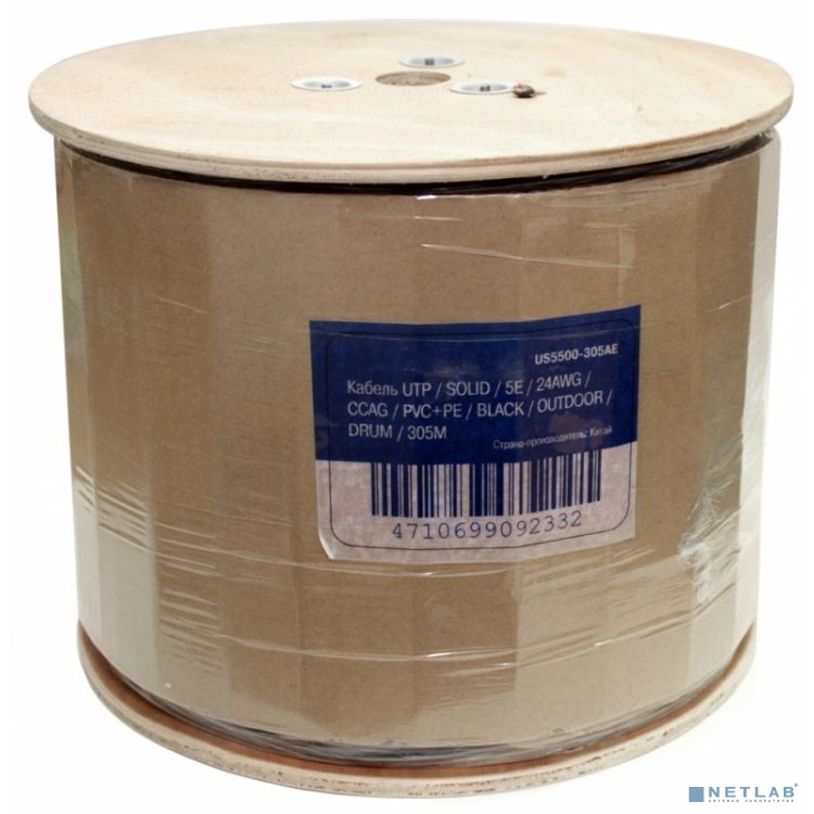 5bites Кабель US5500-305APE-M UTP / SOLID / 5E / CCAG / PVC + PE / BLACK / OUTDOOR / MESSENGER / DRUM / 305M