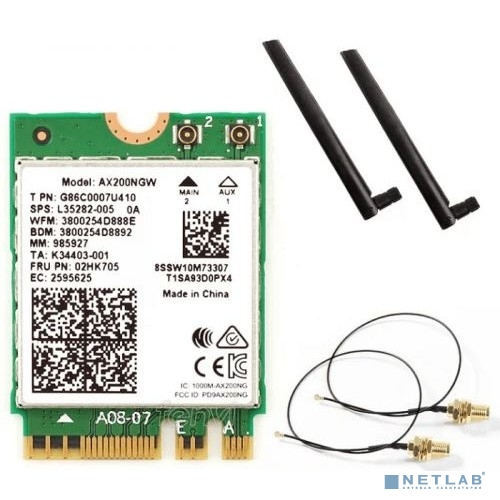 Intel AX200.NGWG.DTK Wi-Fi (802.11) Wi-Fi 6 (Gig+) Desktop Kit, AX200, 2230, 2x2 AX+BT, vPro, 999VGD