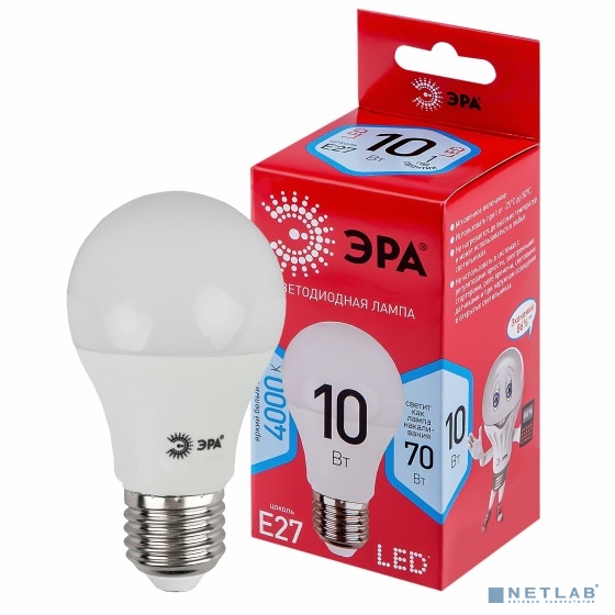 Эра Б0049635 Лампочка светодиодная RED LINE LED A60-10W-840-E27 R Е27 / E27 10 Вт груша нейтральный белый свет