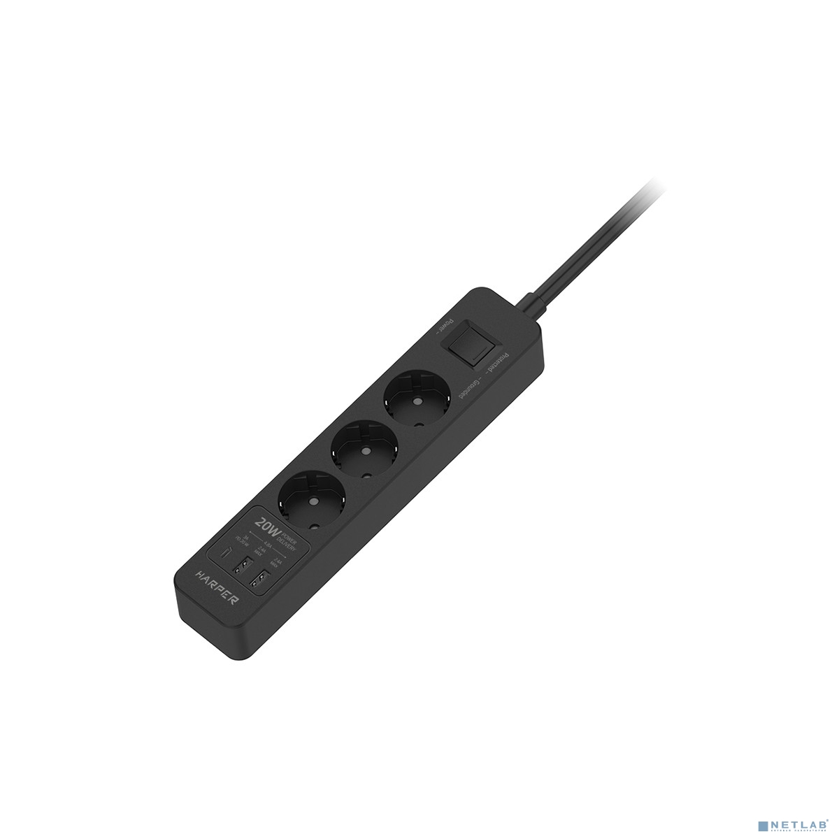 Harper Сетевой фильтр с USB зарядкой UCH-440 Black PD3.0 (3 роз.,5м., 2xUSB+1xType-C портами, 4000W) {H00003203}