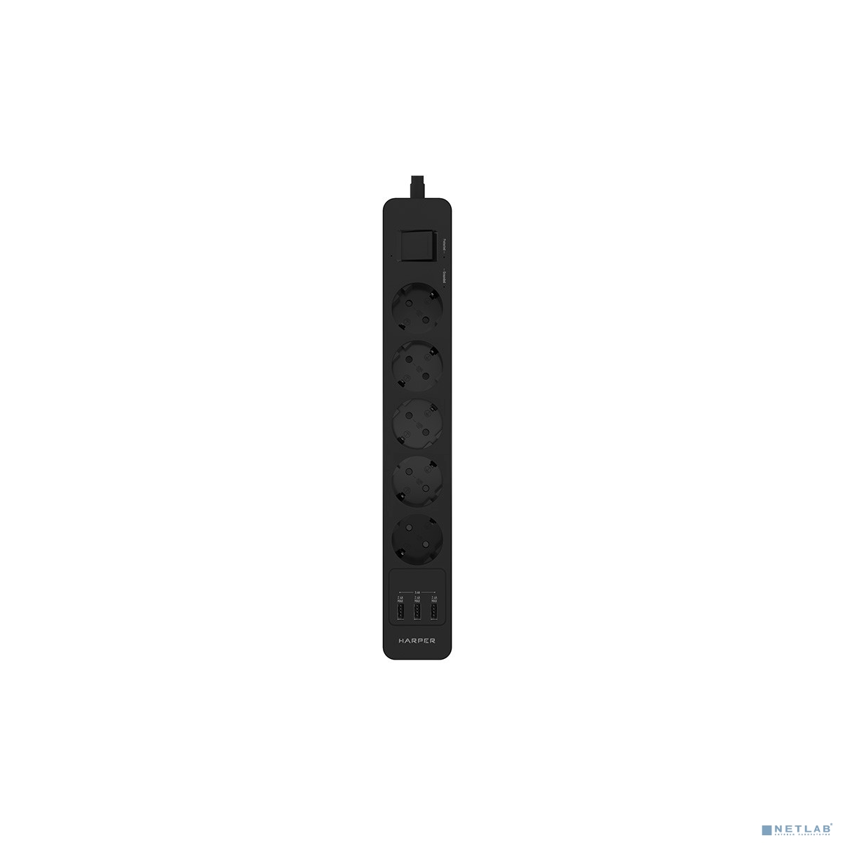Harper Сетевой фильтр с USB зарядкой UCH-560 Black (5 роз.,3м.,3 x USB 2.4A (max 3.4A), 4000W) {H00003013}