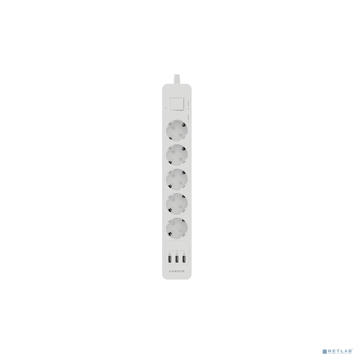 Harper Сетевой фильтр с USB зарядкой UCH-560 White (5 роз.,3м.,3 x USB 2.4A (max 3.4A), 4000W) {H00003014}