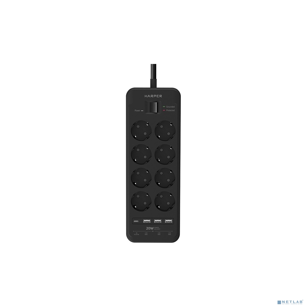 Harper Сетевой фильтр с USB зарядкой UCH-650 Black PD3.0 (8 роз.,5м.,3xUSB+1xType-C портами, 4000W) {H00003210}