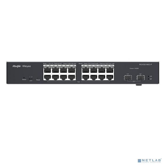 Ruiji RG-ES218GC-P 16 портов Gigabit Ethernet, коммутатор с облачным управлением 16 портов PoE/PoE+, 2 SFP, 240W PoE, 19 дюймов