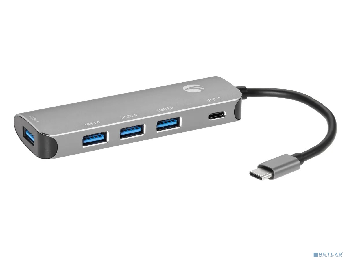 VCOM CU4383 Адаптер концентратор Type-C --> 4 port USB3.0 HUB+PD, Alum Shell VCOM <CU4383>[4895182217720]