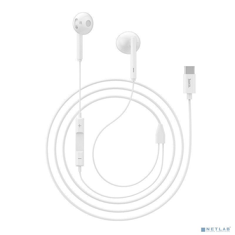 HOCO L10/ Наушники + микрофон/ Кнопка управления/ Регулятор громкости/ 1.2м/ Type-C/ White
