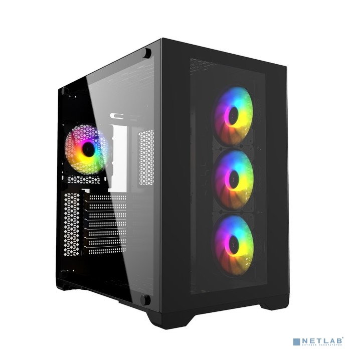 Powercase Vision Black, Tempered Glass, 4х 120mm 5-color fan, чёрный, ATX (CVBA-L4)